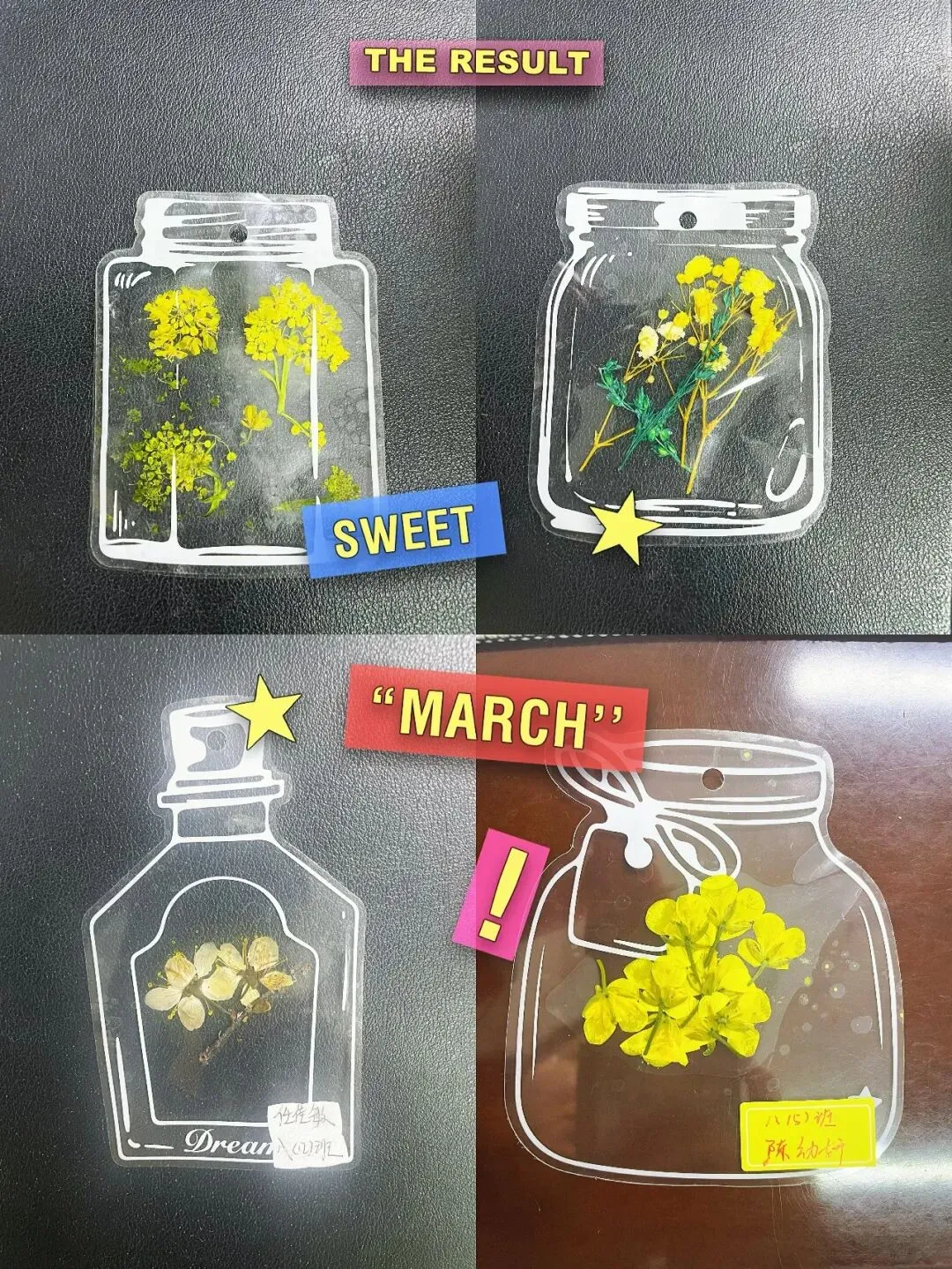 油菜花的明黄、山茶花的绯红、桃花的柔粉、紫叶李的淡雅……同学们细心压制,将花朵最完整的姿态留存下来。一枚枚书签上,春花静静绽放,仿佛还带着风里的香气。