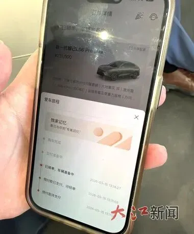 订单显示:陈女士从“下定”到“锁单”仅3分钟。