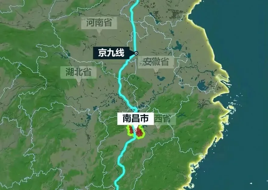 京九铁路从安徽进入湖北,然后转头向东,进入江西,一进江西,第一个重要城市就是九江,从九江往南走,问题来了,如果铁路走直线,从九江直接往南到赣州,会经过大片山区,沿途没什么大县城,但如果稍微往东偏一点,就能把江西省会南昌拉进来。