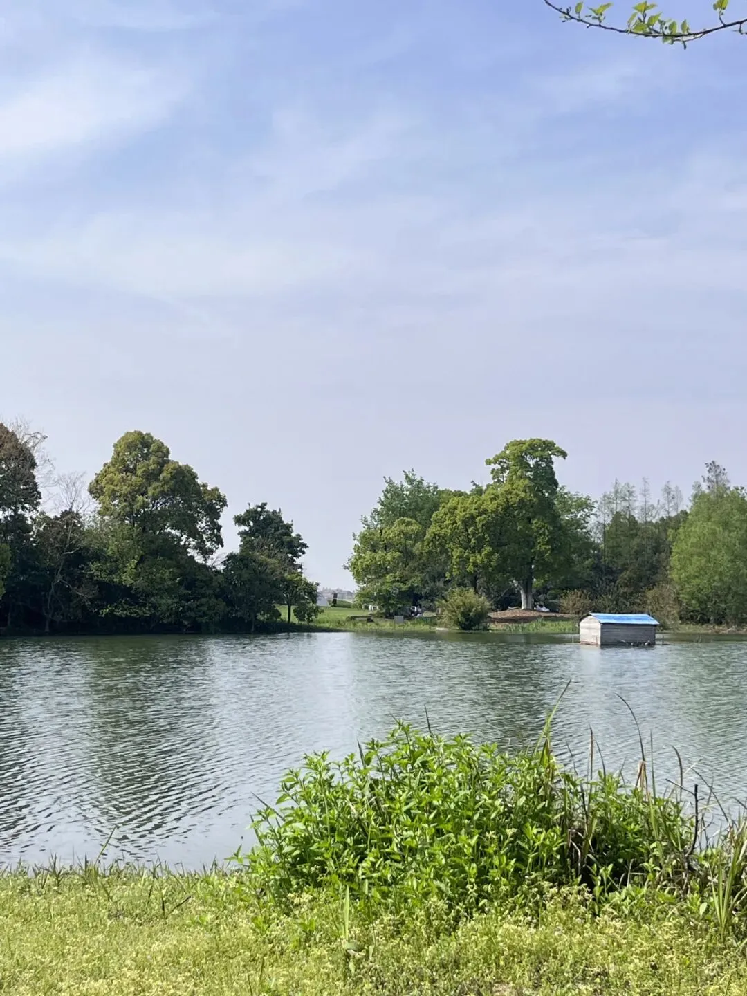 看着波光粼粼的湖面、感受着鸟语花香