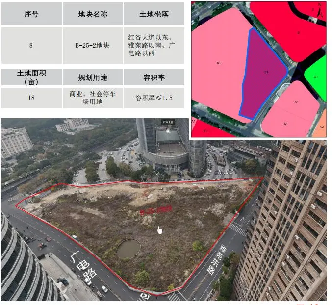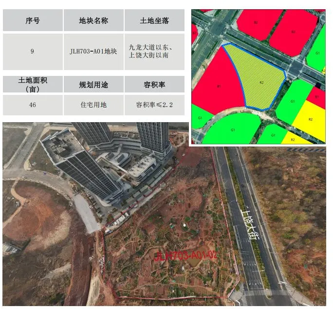 位于龙虎山大道以东、复兴大道以南;面积为67亩;土地用途商住用地。容积率≤1.5,建筑密度≤30%,绿地率≥35%。