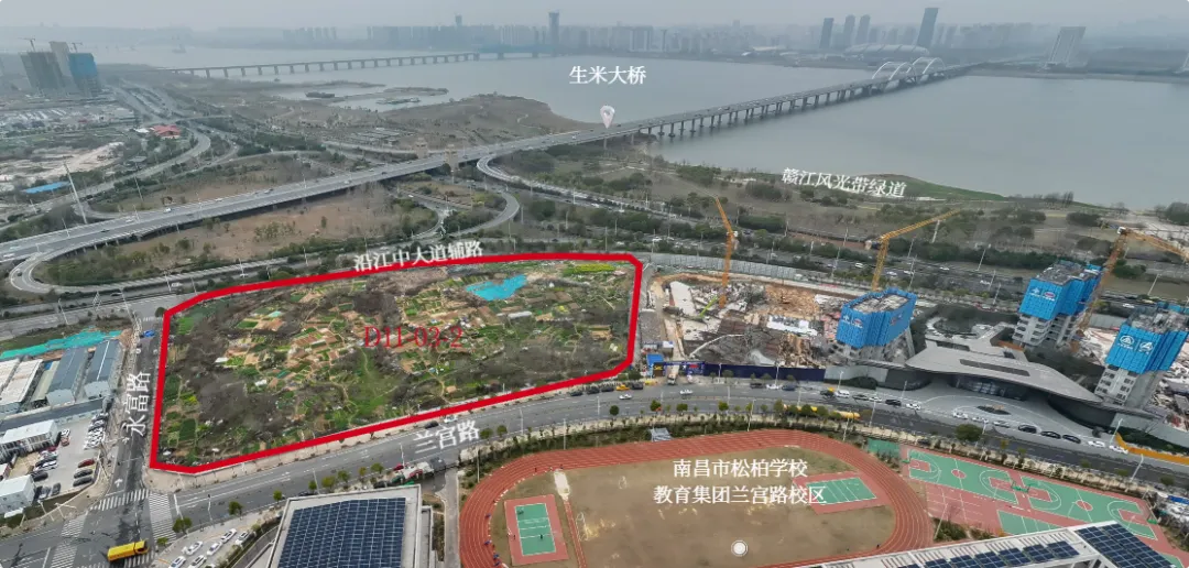 地块位于九江街旁,交通便利,距离2号线龙岗站800米,南昌西站900米;附近教育资源丰富,距离南昌市红谷滩区新龙学校800米,距离南昌师范附属实验小学教育集团(九龙湖校区)1.9公里,距离江西飞行学院2公里;周边环境优美,骑行9分钟可到达前湖公园;生活休闲配套设施齐全,距南昌西站北广场-西站美食城1.4公里,距沃华W广场1.7公里;周边还有玉苑、百汇中心等住宅小区。