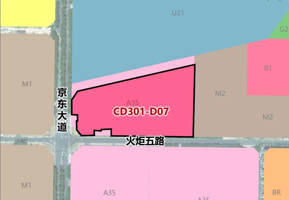 位于高新区火炬五路以北、京东大道以东;面积为84亩;土地用途商业用地。容积率≤1.0-1.5,建筑密度≤40%,绿地率≥10%。