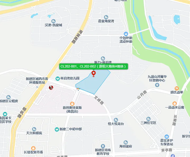 地块位于青山湖区人民法院塘山人民法庭旁,距4号线火炬站500米;距南师附小(香溢花城校区)1.6公里,距南昌三中(高新孺子校区)1.7公里,距南昌十五中1.8公里;距江西省医学科学院附属大愿医院1.2公里;距新城吾悦广场1.8公里;距青山湖风景区2.1公里。
