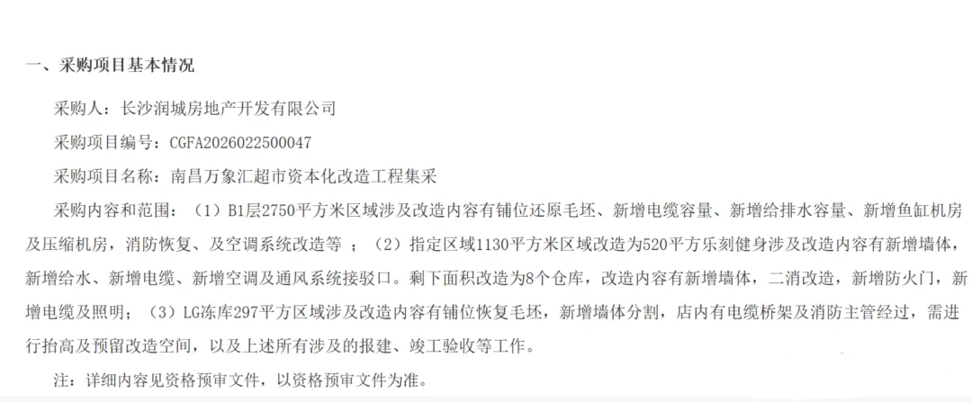 2026年2月底,青山湖万象汇blt精品超市官宣闭店,同时也迎来了南昌第八家盒马鲜生,根据计划将于今年年中开业。近日,再次走进现场,目前超市已经全部拆除了原先的装修结构,同时正在进行隔墙空间分隔等施工,即将全面启动装修等施工。从项目施工改造内容看,B1层2750平方米区域涉及改造内容有铺位还原毛坯、新增电缆容量、新增给排水容量、新增鱼缸机房及压缩机房,消防恢复、及空调系统改造等 ;指定区域1130平方米区域改造为520平方乐刻健身涉及改造内容有新增墙体,新增给水、新增电缆、新增空调及通风系统接驳口。剩下面积改造为8个仓库,改造内容有新增墙体,二消改造,新增防火门,新增电缆及照明;LG冻库297平方区域涉及改造内容有铺位恢复毛坯,新增墙体分割,店内有电缆桥架及消防主管经过,需进行抬高及预留改造空间。也就是说,原先Blt精品超市所属空间或将分隔使用,包括盒马鲜生、乐刻健身等。第八家盒马鲜生万象汇门店或将是南昌最小规模门店。