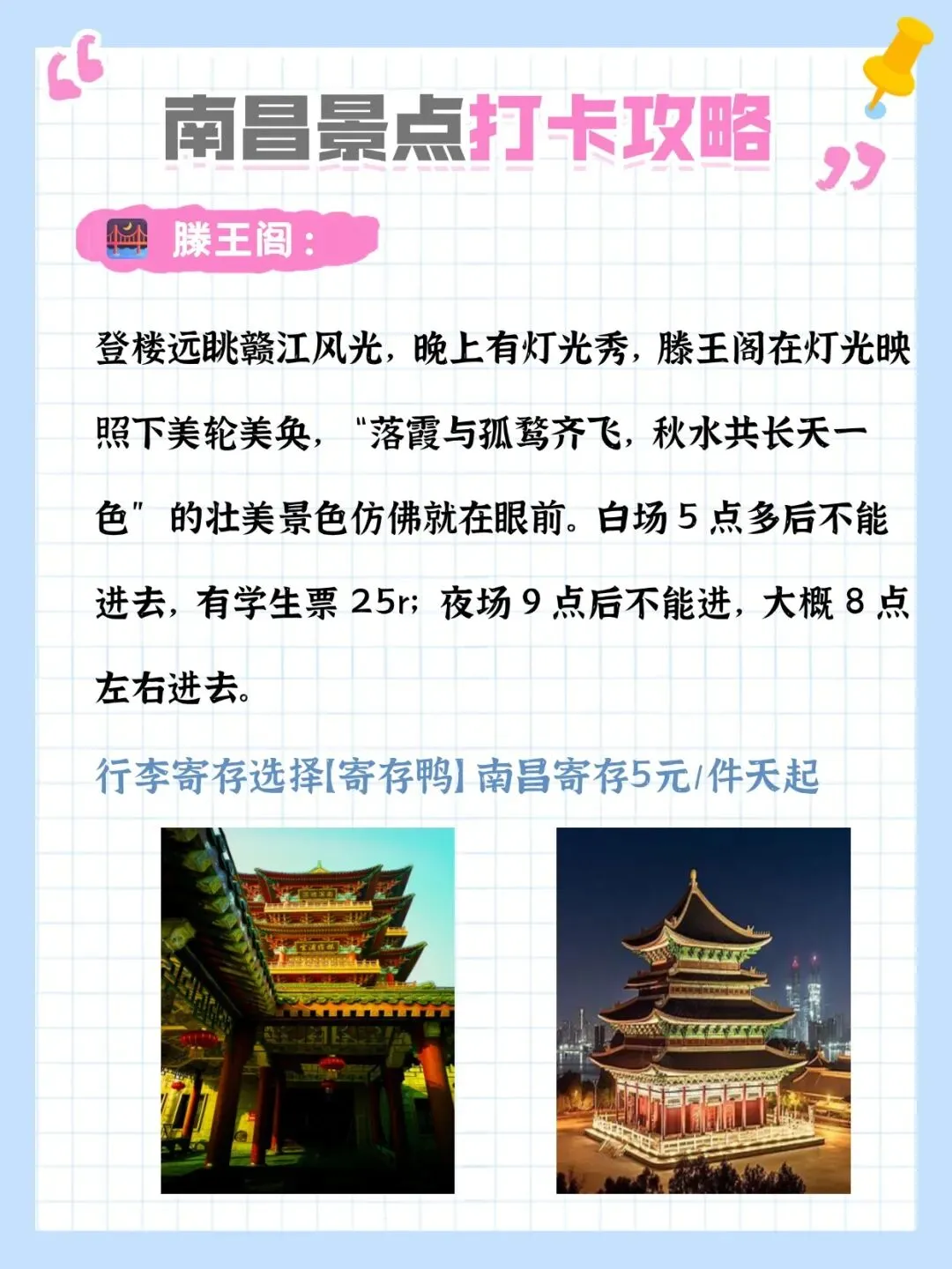 登楼远眺赣江风光,晚上有灯光秀,滕王阁在灯光映照下美轮美奂,“落霞与孤鹜齐飞,秋水共长天一色” 的壮美景色仿佛就在眼前。白场 5 点多后不能进去,有学生票 25r;夜场 9 点后不能进,大概 8 点左右进去。