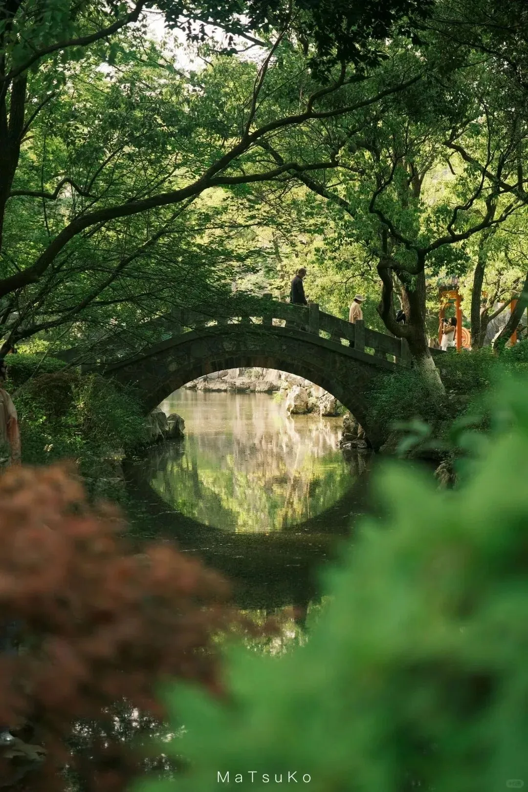 这座公园真是南昌的宝藏绿意盎然的拱桥和仿古建筑还有像西兰花一样可爱的大树