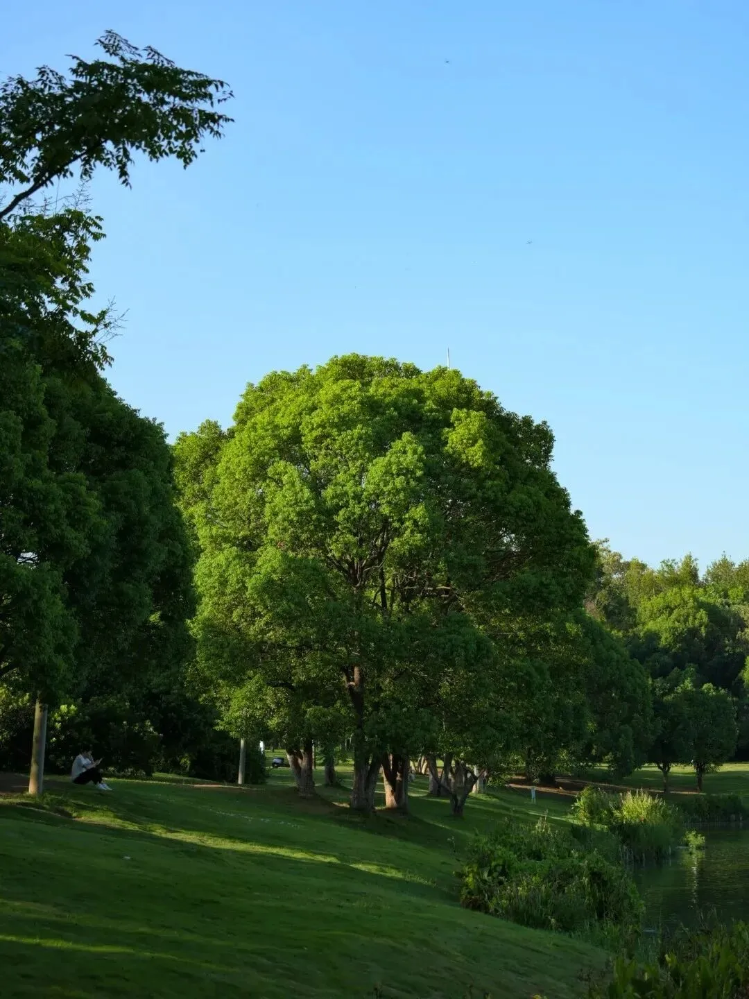 阳光 草地 香樟湖边这画面怎么待都不腻周末人可能会多一点建议上午前往走到湖边找个安静的地方