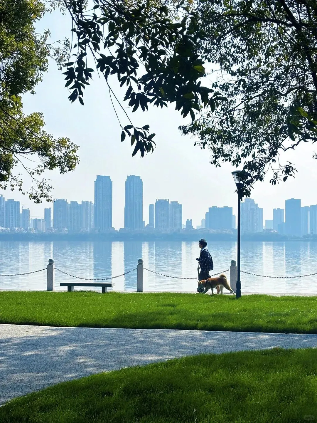 湖面波光粼粼傍晚还能邂逅落日余晖拍照发圈分分钟被问爆地址距离市区近交通也方便公园里还有很多卖咖啡的可以点杯咖啡沿着湖边慢慢走