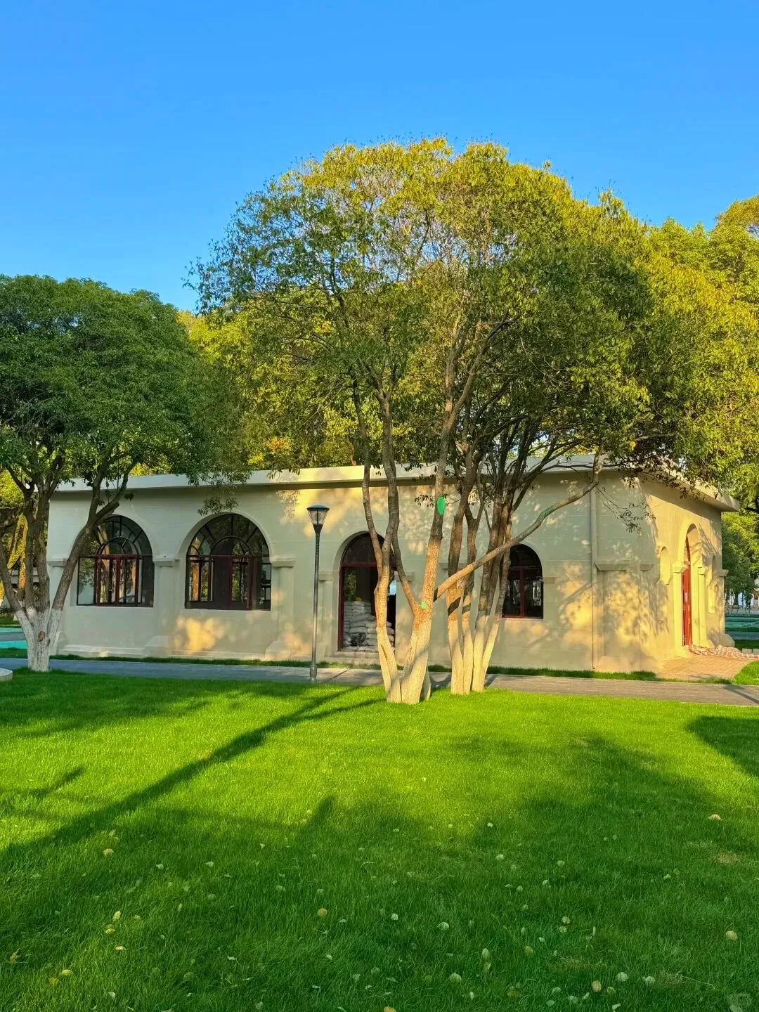这里紧临前湖 被绿植环绕空气清新到深呼吸都带青草香有坡度的草坪