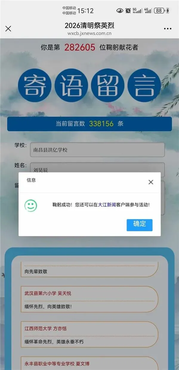 线上祭英烈,云端传深情。我校组织一至九年级全体学生开展线上祭英烈活动,打破时空的阻隔,让同学们足不出户便能表达对革命先烈的缅怀与崇敬。各班有序组织学生登录指定平台,认真完成鞠躬、献花、书写英烈寄语等环节,每一个动作都饱含敬意,每一句寄语都满含深情,用指尖的温度传递对英烈的追思,让爱国之情在心中悄然扎根。