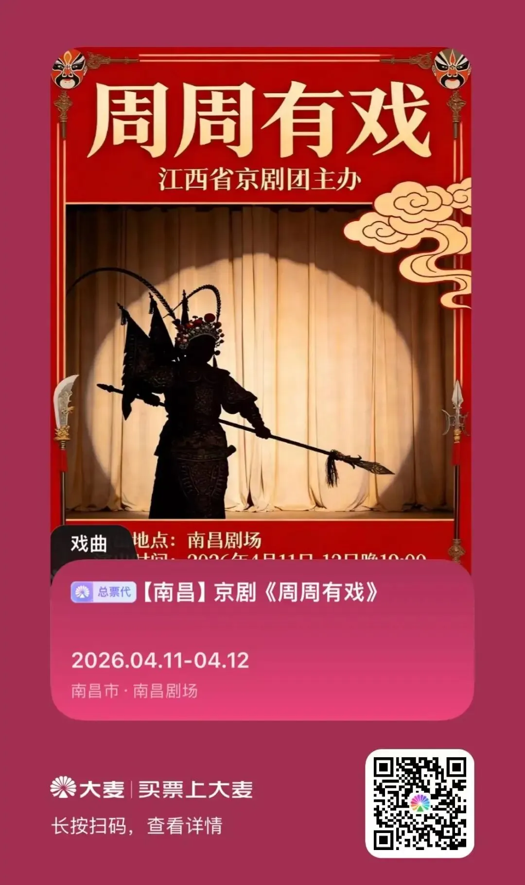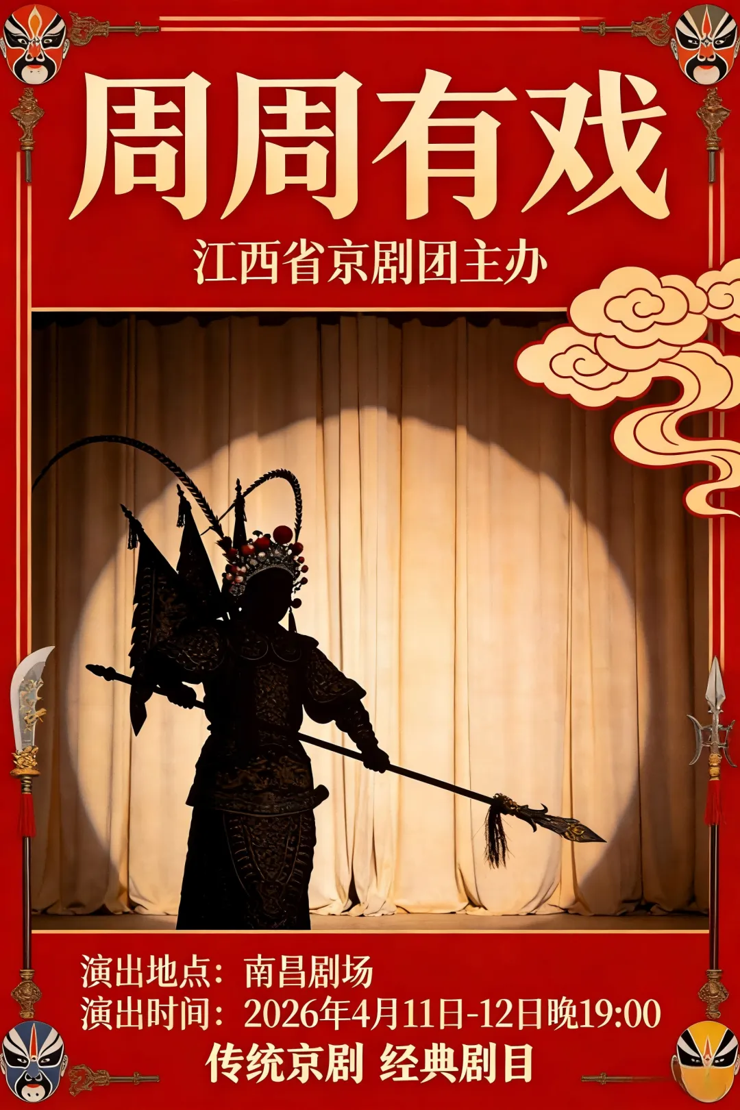 这个周末,无需远行,来南昌剧场,赴一场与经典的相遇——江西省京剧团倾情呈现两天连演折子戏专场,用匠心演绎经典,用唱腔传递情怀,邀你共赴两场沉浸式的国粹盛宴!