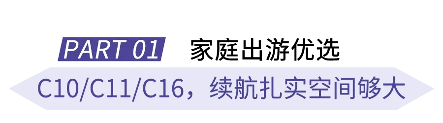 小家庭选车就怕“车太大难停、空间太小憋屈”,C10完美平衡!增程版1190km综合续航,市区通勤、周边游无压力,绝对年轻家庭满分搭档;而且C10纯电版配备800V快充,能快速补能;超级大床模式前后排座椅全部放倒,可形成长度超2.7米的大床,在静谧的座舱中带娃小憩片刻,隔绝窗外喧嚣~