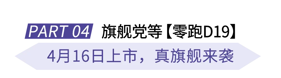 预算充足、想冲顶配的朋友,盯紧4月16日上市的零跑D19!作为零跑旗舰D平台的首款力作,以“真旗舰见真章”的实力,精准适配高端家庭、商务出行及长途自驾需求,堪称25-30万级大型SUV的“卷王”,旗舰增程、旗舰智能、旗舰舒适……妥妥的高端出行新典范!
