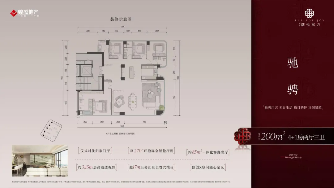 其中最让人欲罢不能的,就是建面约258㎡户型。客餐厅与主卧均为270°环幕视野U型舱,超50米IMAX观江视界,约9公里超宽观江界面毫无遮挡,窗外即是3600亩滨江外滩公园。