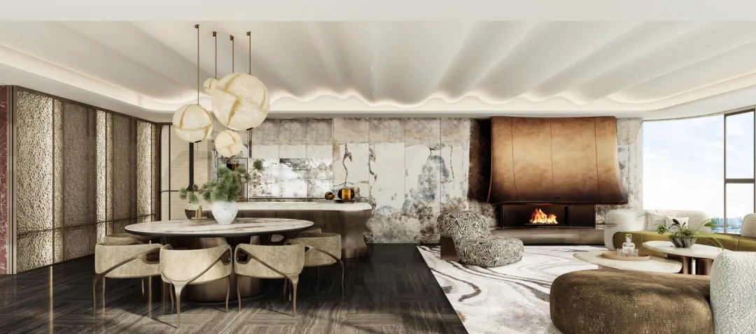 建面约258㎡户型的创新之处还在于入户玄关正对的X空间,这里可以是观江茶室,也可以是观江书房,所有发生的一切都伴随着度假的feel展开!