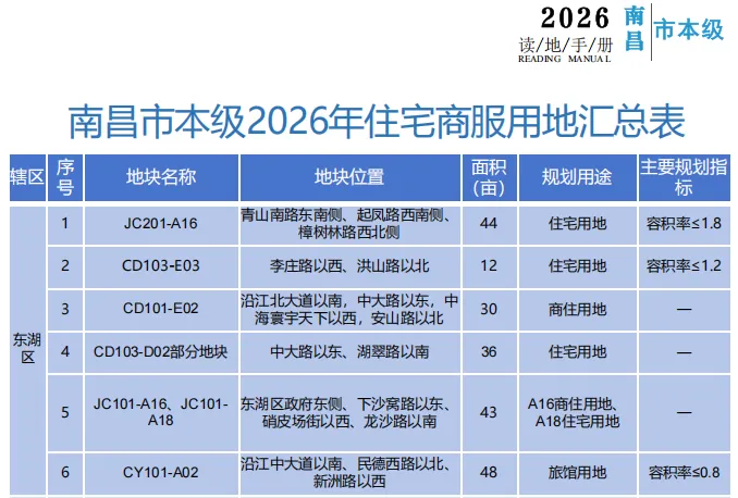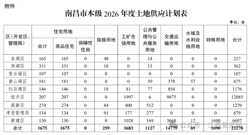 前几日,南昌公布了市本级2026年度土地供应计划表,商品住宅用地合计1675 亩,今日,南昌各区县拟出让详细地块信息正式公布,快来看看吧。