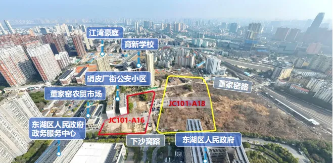 位于东湖区政府东侧、下沙窝路以东、硝皮场街以西、龙沙路以南;面积43亩;土地用途为A16商住用地;A18住宅用地。