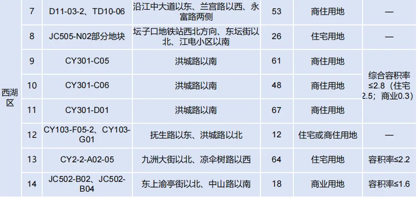 西湖区共8宗,其中,有7宗为住宅用地、商住用地,供地面积为331亩,最小的地块面积12亩,最大67亩。