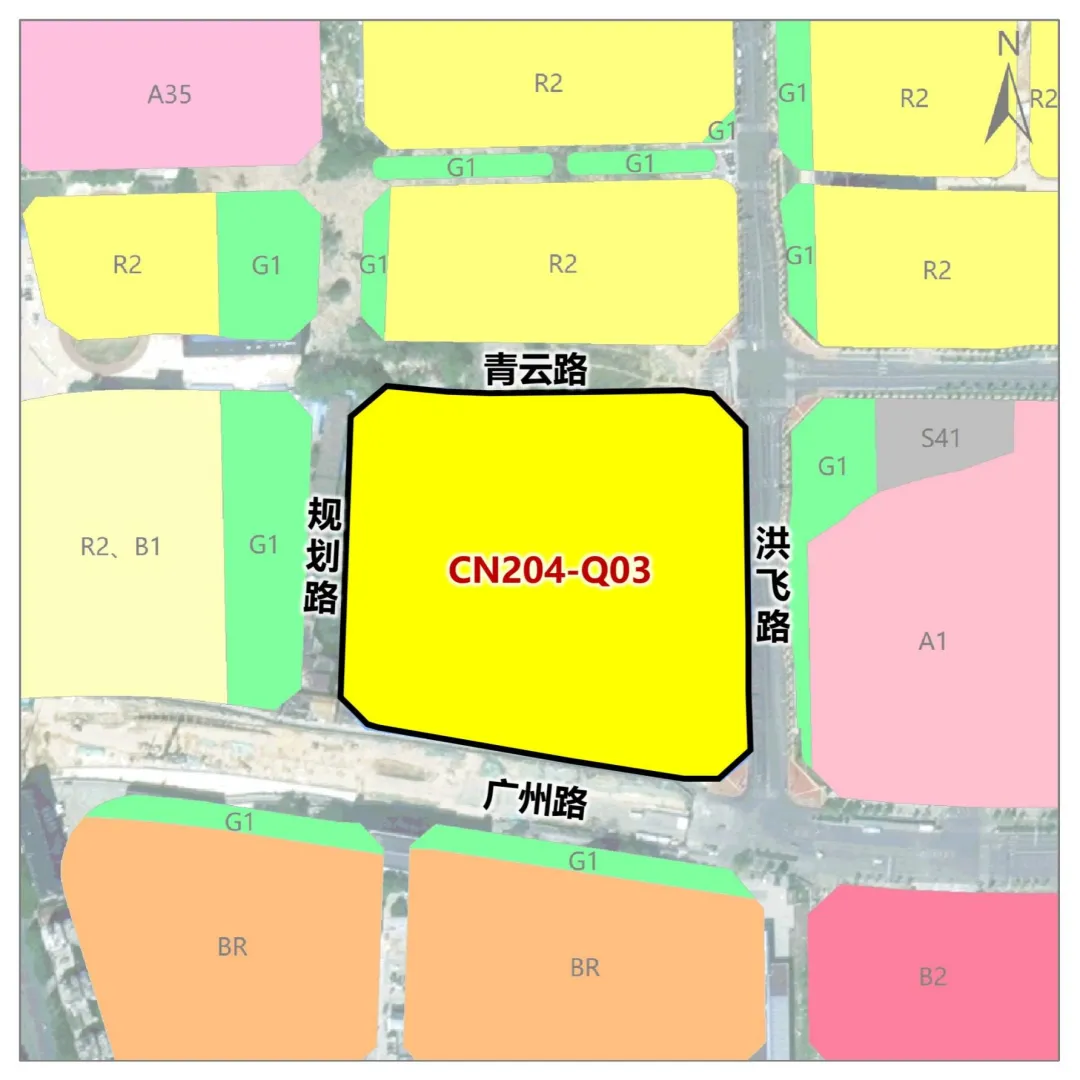 位于腾飞路以东、青云路以南、洪飞路以西、广州路以北;面积为72亩;土地用途住宅用地。容积率≤2.0,建筑密度≤30%,绿地率≥30%。