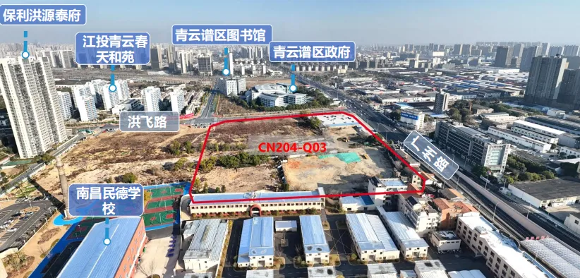地块位于青云谱区人民政府旁,距地铁3号线江铃站和施尧站约2公里;周边公交网路发达,涵盖众多公交线路,有253路、130路、31路、21路、267路等线路;教育资源丰富,距南昌民德学校约800米,距南昌市三店小学约900米,距南昌市第十三中学约1.1公里,周边还有江西省医药学校老校区、江西省药科学校等;1公里内有包家花园文化广场、青云谱区图书馆,距八大山人梅湖景区约2.4公里。