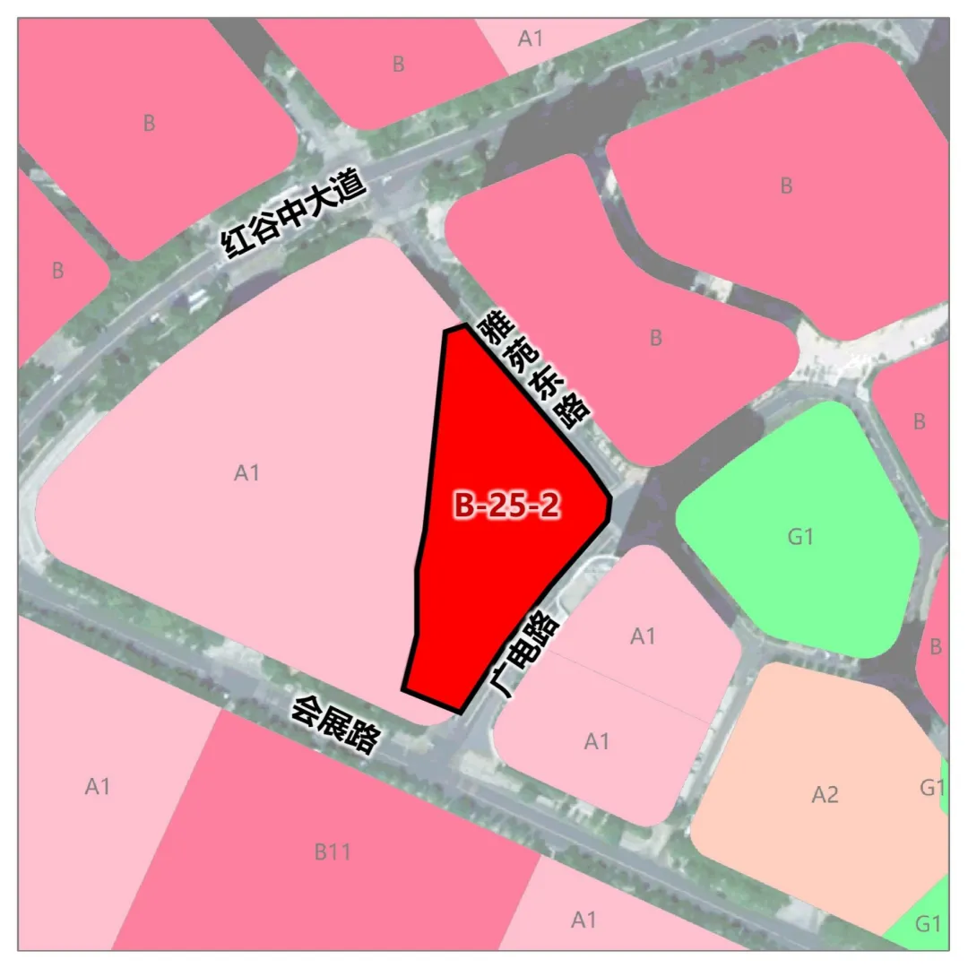 位于红谷大厦以东、会展路以北;面积为18亩;土地用途商业用地。容积率≤1.5,建筑密度≤50%,绿地率≥20%。