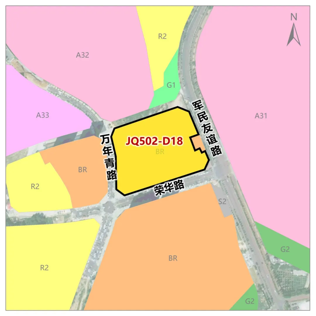 位于万年青路以东、鄂山路以南、孔目湖路以西、荣华路以北;面积为43亩;土地用途住宅用地。