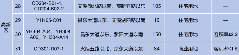位于高新区昌东大道以东、紫阳大道以南;面积为150亩;土地用途住宅用地。容积率≤2.2,建筑密度≤22%,绿地率≥35%。