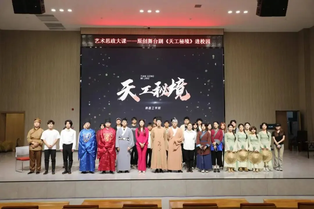 为进一步发挥美育育人功能,推动中华优秀传统文化创造性转化、创新性发展,4月7日,南昌工学院原创精品舞台剧《天工秘境》作为专题艺术思政课,应邀走进南昌应用技术师范学院图书馆报告厅,为该校300余名团员青年带来一场贯通古今、融汇科学与人文精神的沉浸式思政大课。