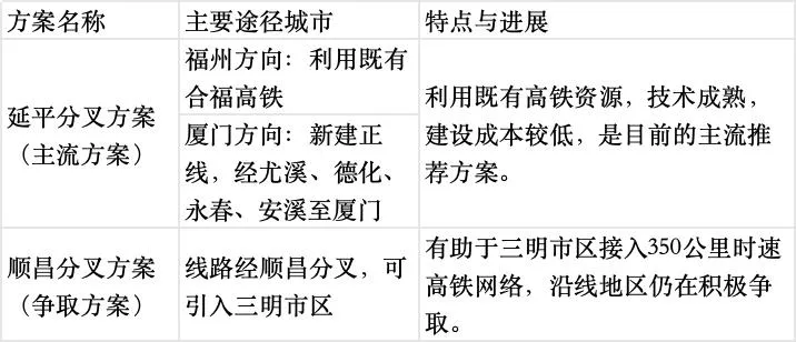 闽北分段节点:在福建境内,线路在延平附近分为两路,形成两个主要方案。