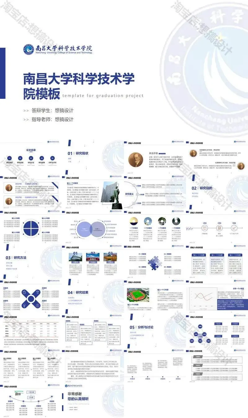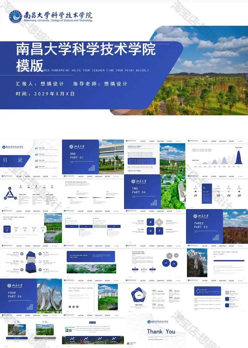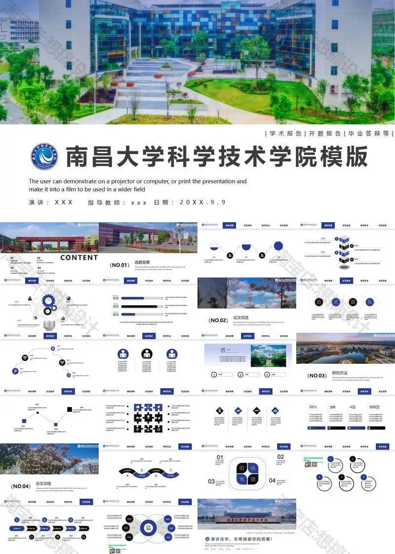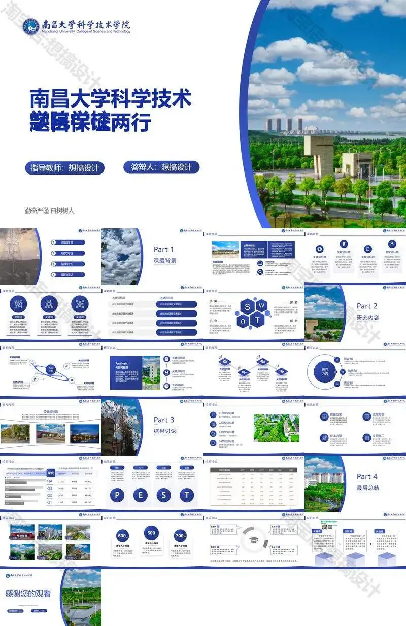 南昌大学科学技术学院毕业答辩PPT模板汇报幻灯片课件总结