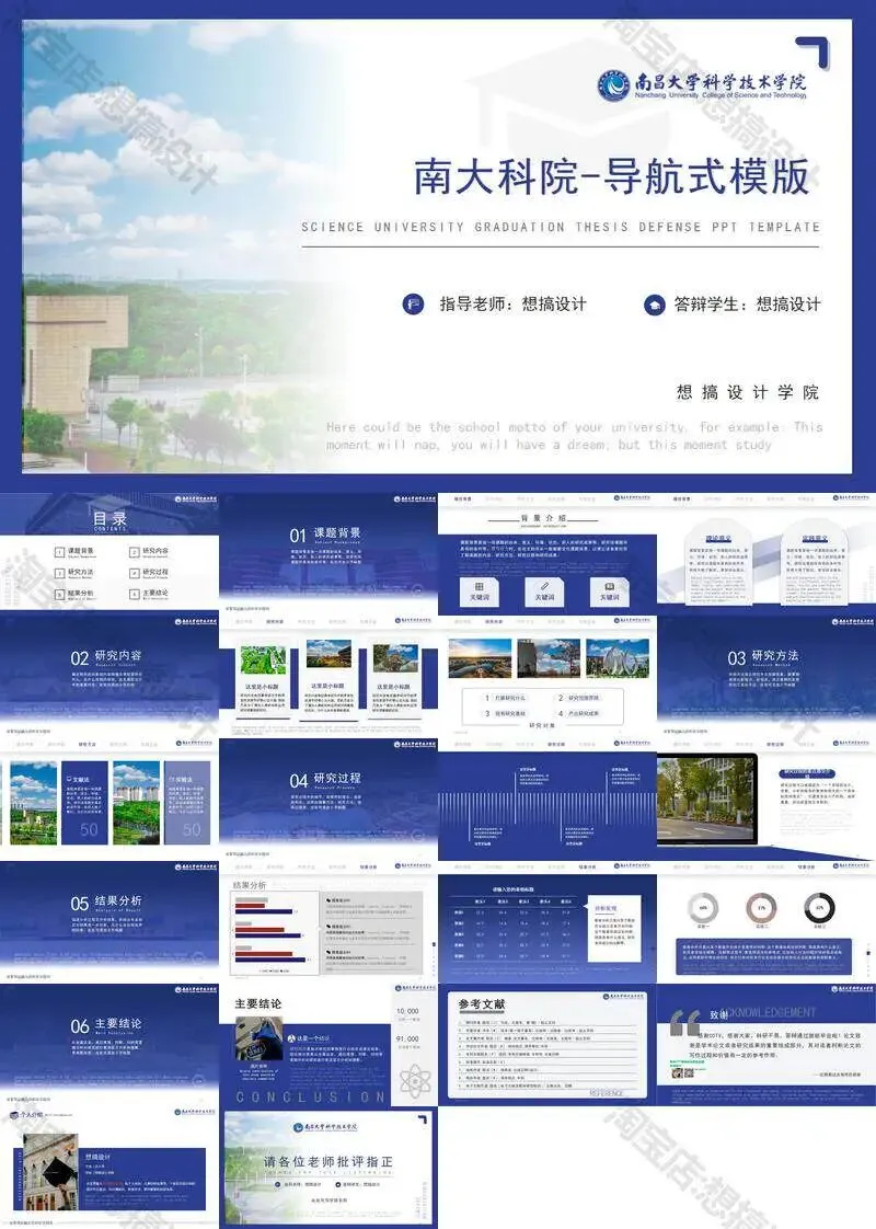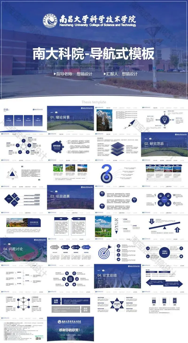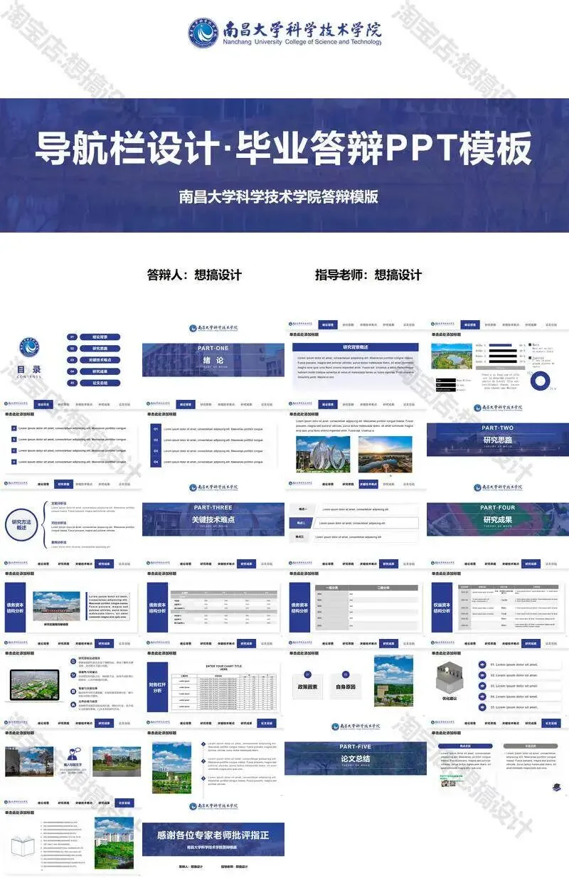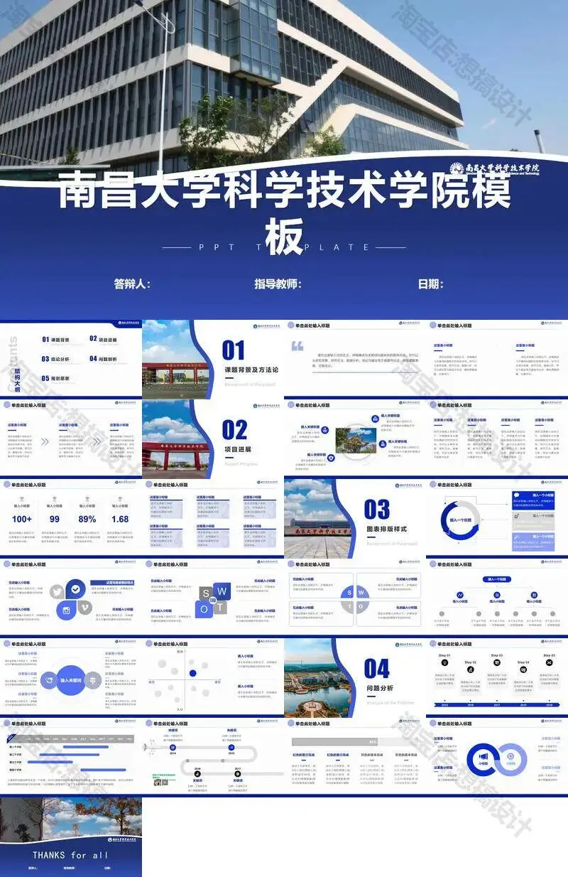 南昌大学科学技术学院毕业答辩PPT模板汇报幻灯片课件总结
