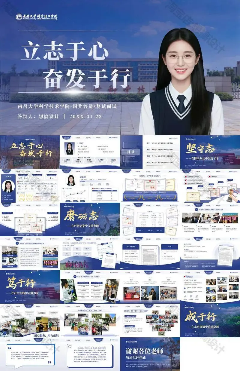 >南昌大学科学技术学院毕业答辩PPT模板汇报幻灯片课件总结