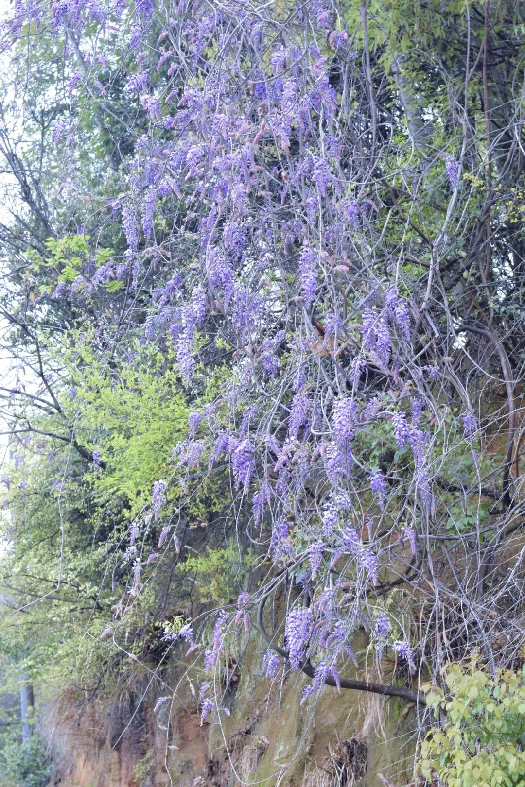 刚入口上坡,就可看到一片紫藤花开,权且算是迎接我们远道而来的欢迎仪式。沿路上走,起始阶段有几户人家,可歇脚吃饭,也卖土鸡土鸭。我们没有停留。
