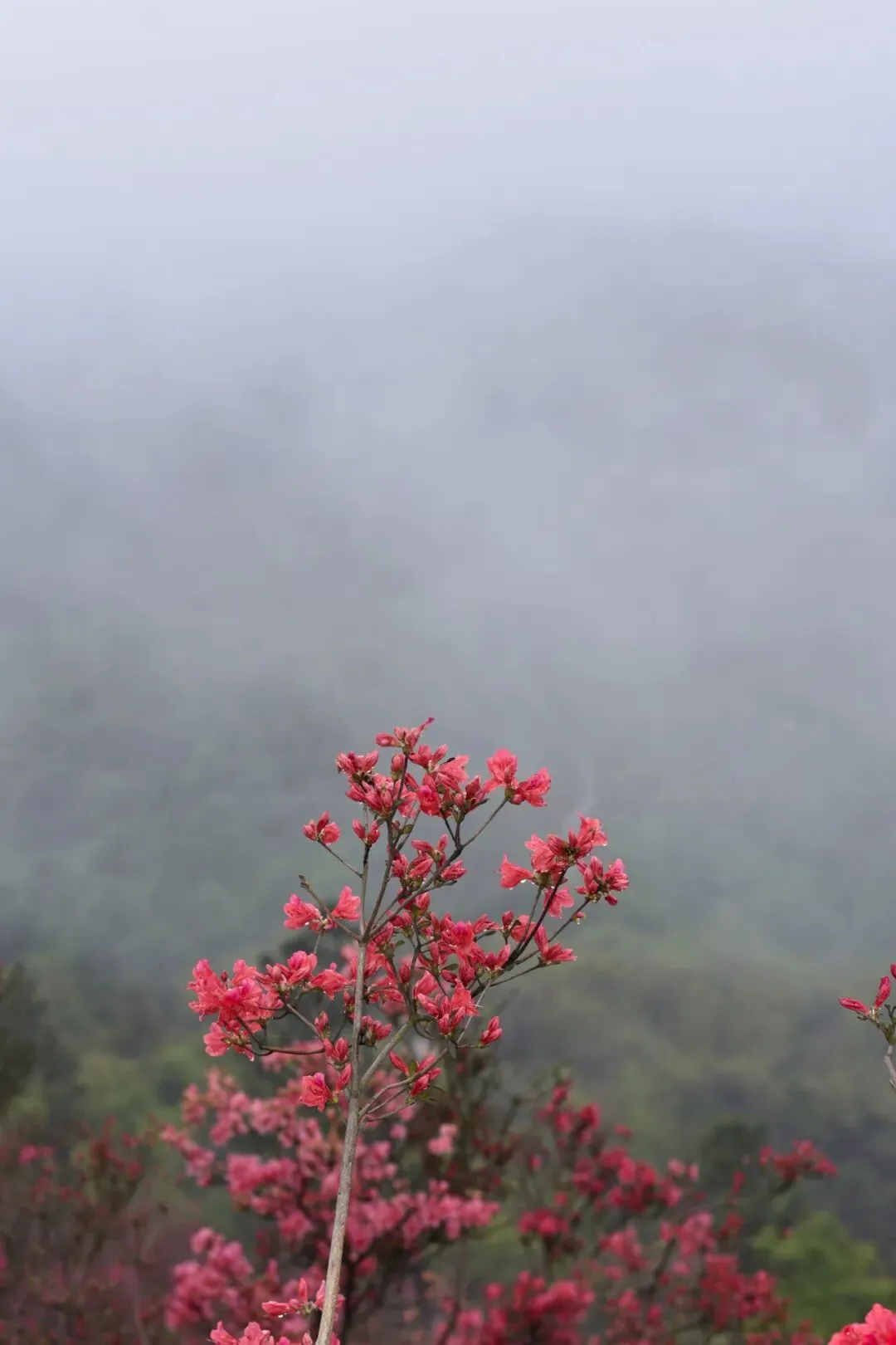 站在山巅,一半是缥缈的雾,一半是燃烧的花;一半是山野的青翠,一半是春日的温柔。风过处,花影轻摇,时光仿佛在此刻慢下来,只余这雾锁花燃的盛景,藏着最动人的山野诗意,而我们此时就恰好在这里,享受这独特风景。