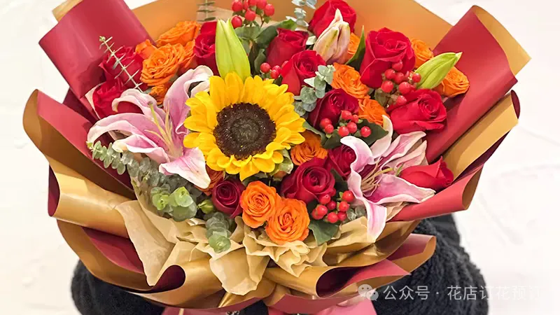 【祝寿鲜花·福泽绵长】为长辈贺寿,花礼当显庄重与雅致。南昌市青山湖区花店特推“松鹤延年”主题花束:帝王花傲立如松,搭配万代兰与金丝菊,以墨绿缎带束成如意造型,寓意健康常青;若偏好传统韵味,可选“五福捧寿”中式提篮,牡丹、寿桃造型永生花与檀木雕刻“寿”字相映成趣,配送时附赠手写《百寿图》临摹卷轴,让心意沉淀为传家温情。