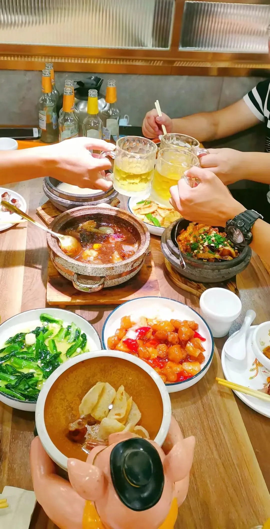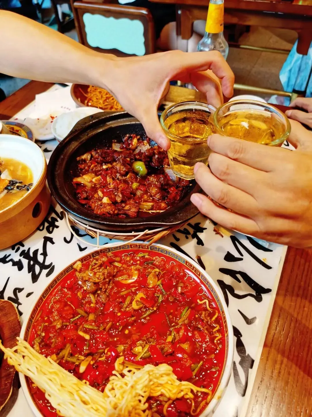 他们爷俩喝着冰啤,能缓解辣味。我是真的吃不了呀。