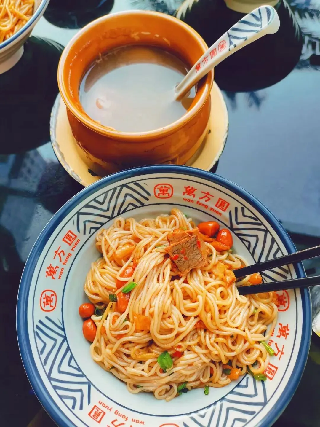 瓦罐汤热气腾腾,肉饼炖得软烂,汤头清亮醇厚。