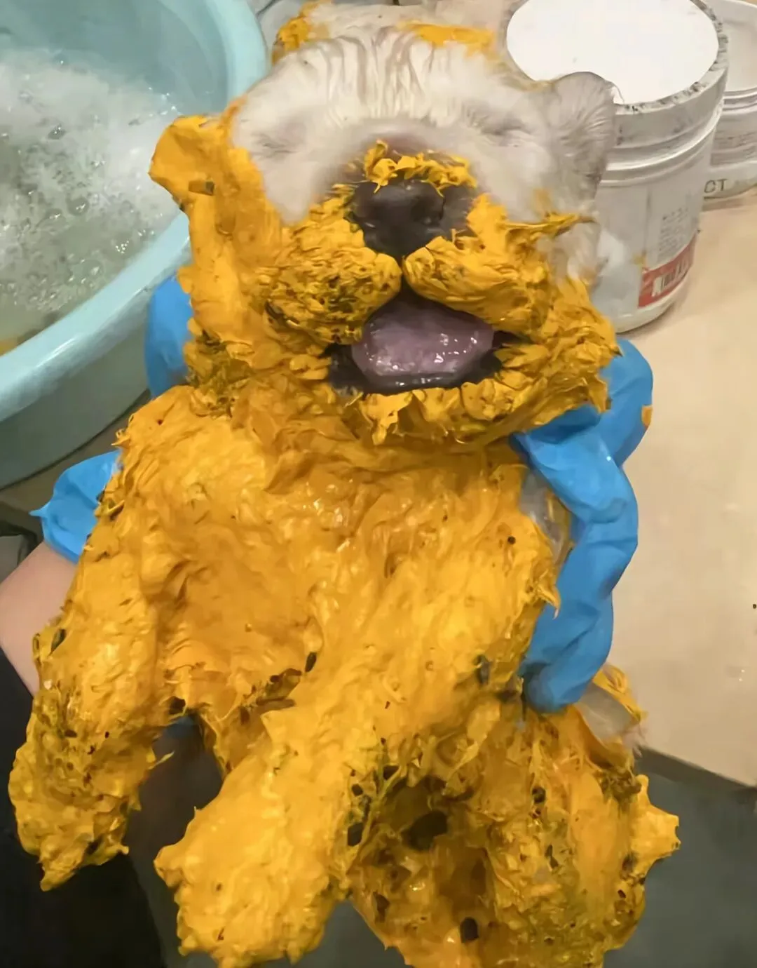 谁能想到,南昌路边一个油漆桶里,居然藏着4只刚满月的小奶狗。它们被人恶意灌满黄油漆,浑身裹得严严实实,口鼻都被堵死,奄奄一息地躺在桶里,连呼吸都困难。