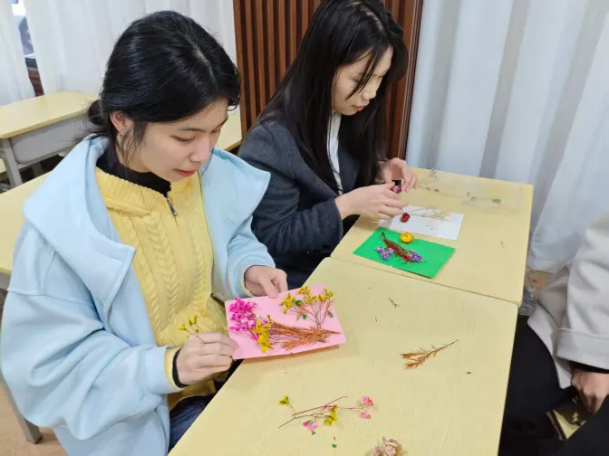 活动伊始,春分手工干花DIY创作环节火热开展。同学们充分发挥想象力与动手能力,简单的材料在同学们手中变成干花、书签、花束,同学们将对春日的期许、对传统文化的热爱与理解融入指尖。春分手工干花DIY创作环节让大家在手工创作的过程中沉浸式感受春分的节气特色,体验传统手工艺的乐趣,亲手勾勒出独属于春日的浪漫与生机。
