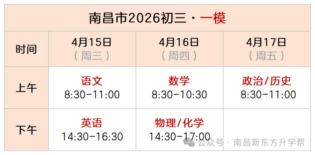 2026 南昌初三一模时间 + 中考三大变化
