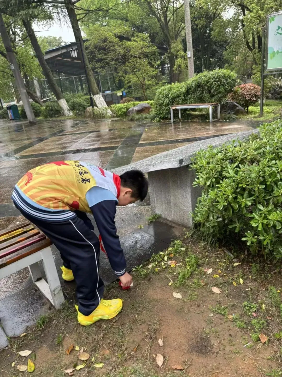 活动中,教师和学生们分工合作,有的负责清洁公园长廊,有的负责整理绿化带,有的清扫落叶。大家齐心协力,不怕脏、不怕累,用自己的双手为公园环境的美化贡献着力量。在劳动的过程中,志愿者们认真细致地清扫着公园的垃圾和杂物。他们不放过任何一个角落,确保公园的干净整洁。