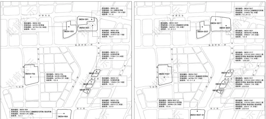 将JC505-N02地块拆改为多宗地块,其中JC505-N01T-02地块为住宅用地,4.8亩,保留现状;JC505-N02T-01地块为住宅用地,25.4亩,容积率1.2;JC505-N02T-02地块为城市轨道交通用地,0.9亩;JC505-N02T-03地块为留白用地,8.84亩;JC505-N02T-04地块为教育用地,4.4亩,保留现状;JC505-N01T-01地块为住宅用地,15亩,保留现状。