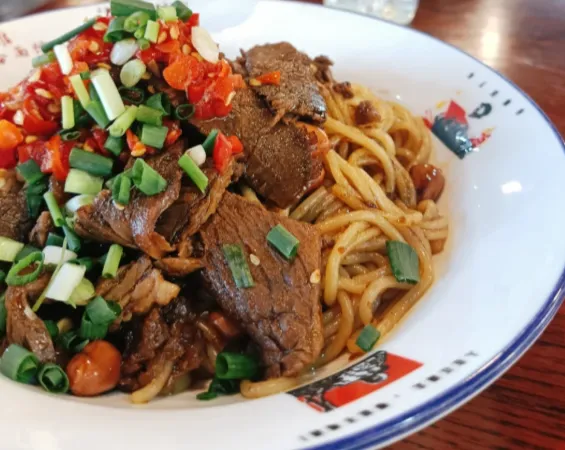 沿着绳金塔周边的街巷继续前行,老居民在门口闲谈,斑驳的墙面爬满绿植,老字号小店的招牌泛着时光光泽,偶尔有自行车缓缓驶过,自带复古滤镜。这里没有过度商业化的喧嚣,只有人文与烟火的交融,每一缕风都裹挟着历史的气息,每一口粉都承载着城市的记忆。