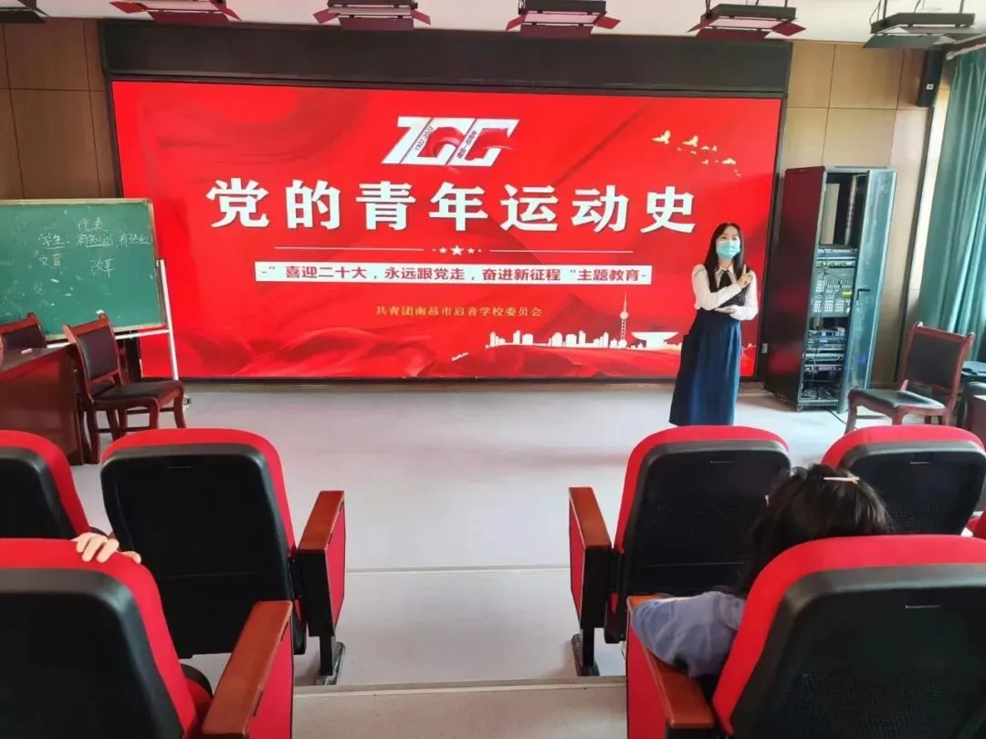 为庆祝建团百年,引导广大团员青年体会不同时期中国青年运动华章,明确肩上的责任与使命,以实际行动迎接党的二十大胜利召开,南昌市启音学校团委于4月26日开展建团百年“喜迎党的二十大,永远跟党走,奋进新征程”主题教育之“党的青年运动史”专题团课。全校团员及入团积极分子共40人参会,此次团课由团员教师肖慧慧主持。