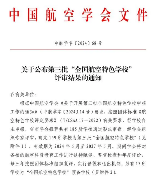 第三批“全国航空特色学校”