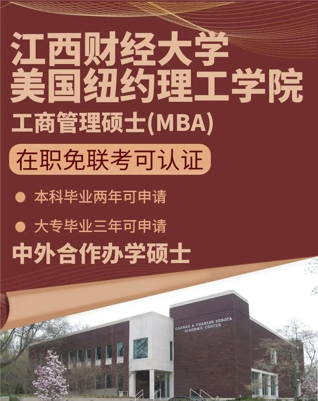 江西财经大学与美国纽约理工学院合作培养MBA研究生项目始于1998年,至今已有28年的历史,该项目是经国务院学位委员会批准、2003年教育部复核通过并授予境外MBA学位的中外合作办学项目,是全国首批八个中外合作办学MBA教育项目之一。本项目连续六年(2020-2025)荣获“中国商学院中外合作商科硕士项目TOP10”。该榜单是中国商科教育领域内极具权威性和影响力的排名榜单之一,多年来已得到社会各界的广泛认可。本项目共开设12门课程,学制两年,所设课程与国际接轨,传授全球最先进的管理理念,课程教学由两校教师共同完成。学生毕业后将由美国纽约理工学院授予MBA工商管理硕士学位,经教育部留学服务中心学历学位认证后国家承认学位及相应学历。该项目凭借其独特的课程体系、创新的教学模式和跨文化的学术环境,吸引了来自全国各地的优秀学生。至今为止,本项目已有2311名毕业学生在国内外不同行业领域等展现出优秀的综合素质与竞争力,赢得了社会的广泛赞誉。
