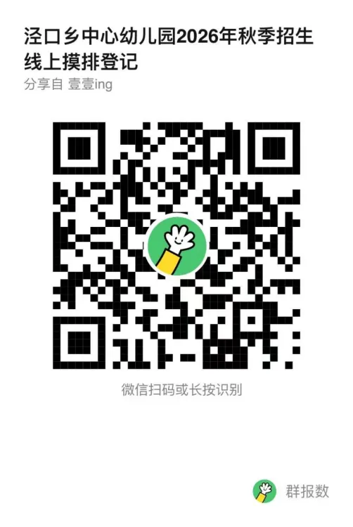 关注南昌县泾口乡中心小学微信公众号扫描“2026年秋季新生入园摸排二维码”进行报名。