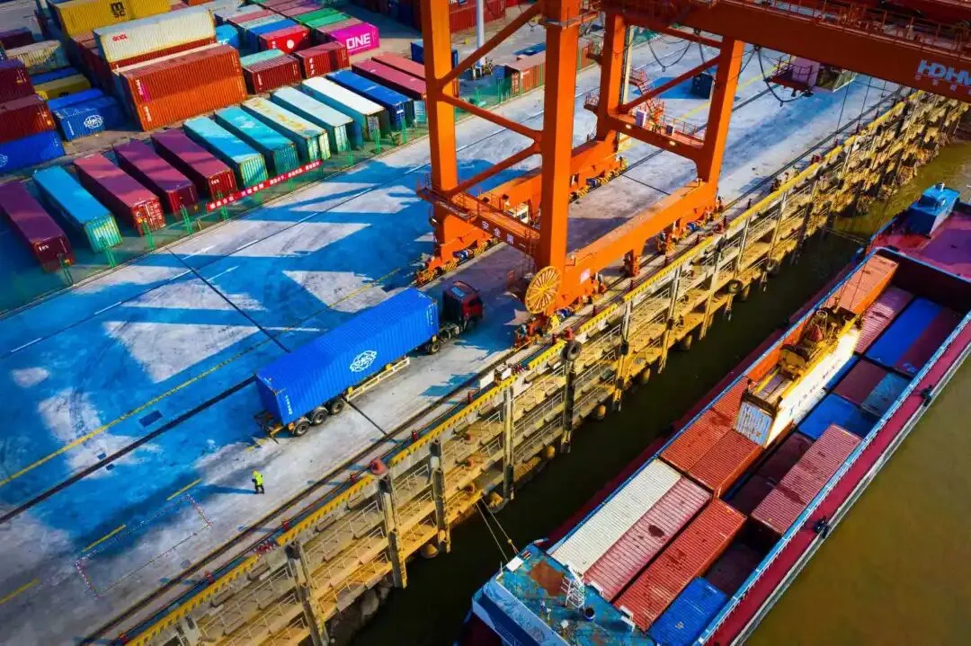 春日的赣江畔,暖阳洒在江面上泛起粼粼波光。南昌姚湾综合码头的集装箱堆场上机器轰鸣,随着一台大型轨道式集装箱门式起重机完成最后检测,这座码头正式迎来了它的“核心引擎”。