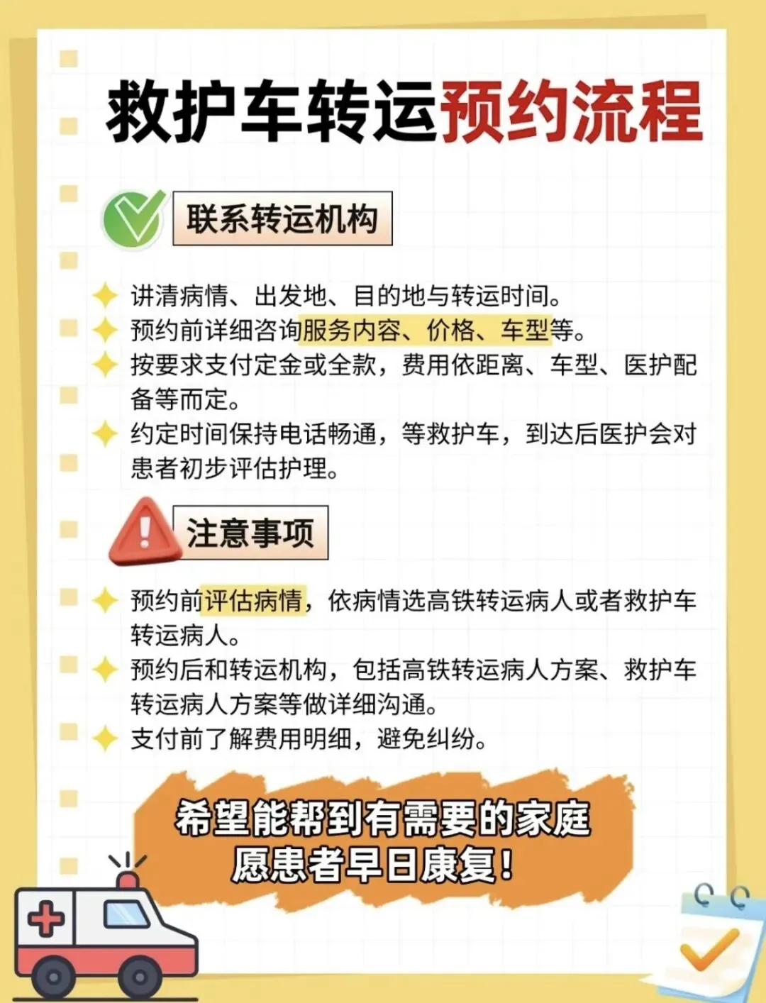 为确保转运过程顺利,请您提前做好以下准备: